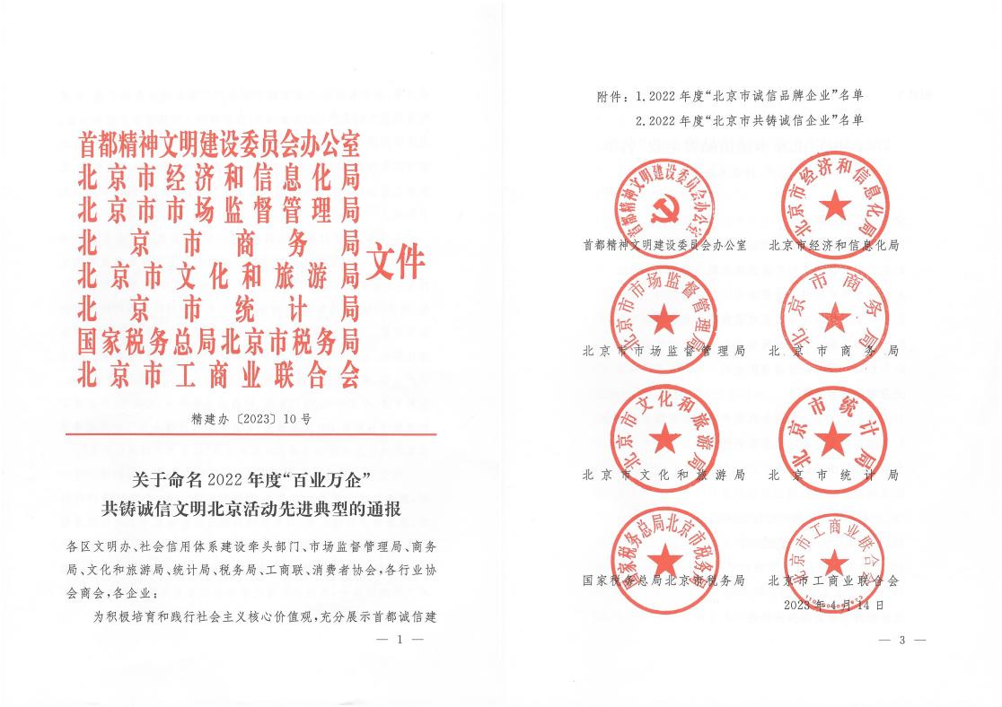 2022年以來,首都精神文明建設(shè)委員會辦公室、北京市經(jīng)濟和信息化局、北京市市場監(jiān)督管理局、北京市商務(wù)局、北京市文化和旅游局、北京市統(tǒng)計局、國家稅務(wù)總局北京市稅務(wù)局、北京市工商業(yè)聯(lián)合會在全市組織開展了“百業(yè)萬企”共鑄誠信文明北京活動。